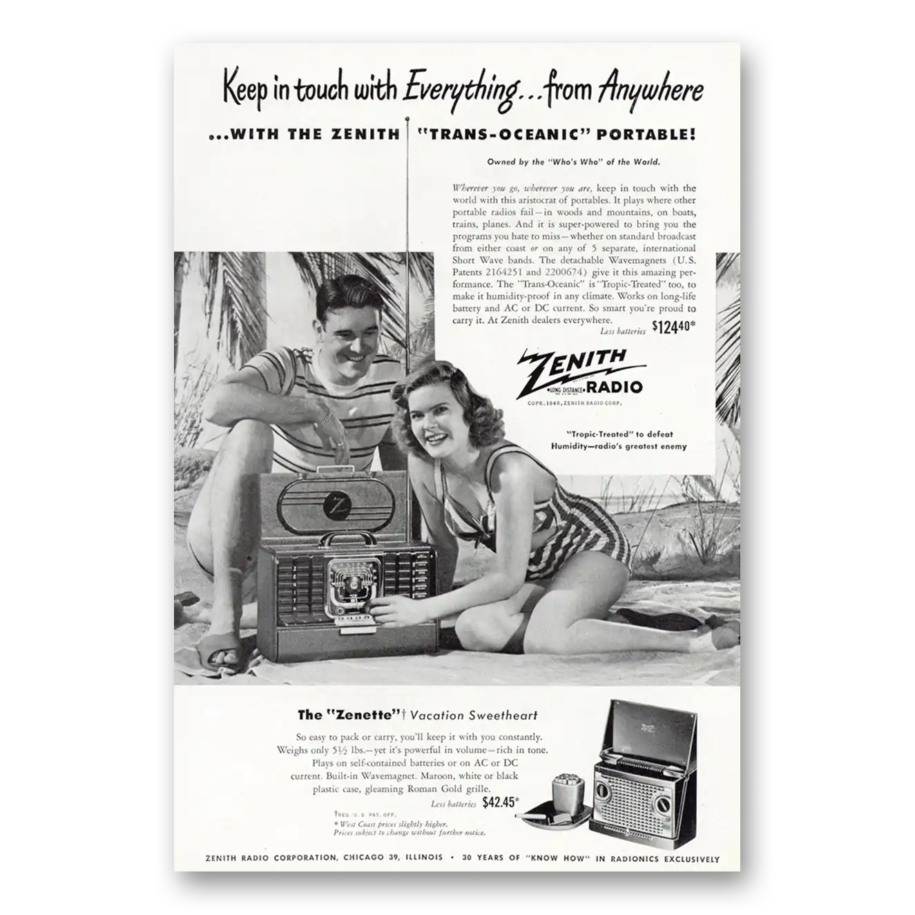 1948 Zenith Radio Print Ad | Keep In Touch