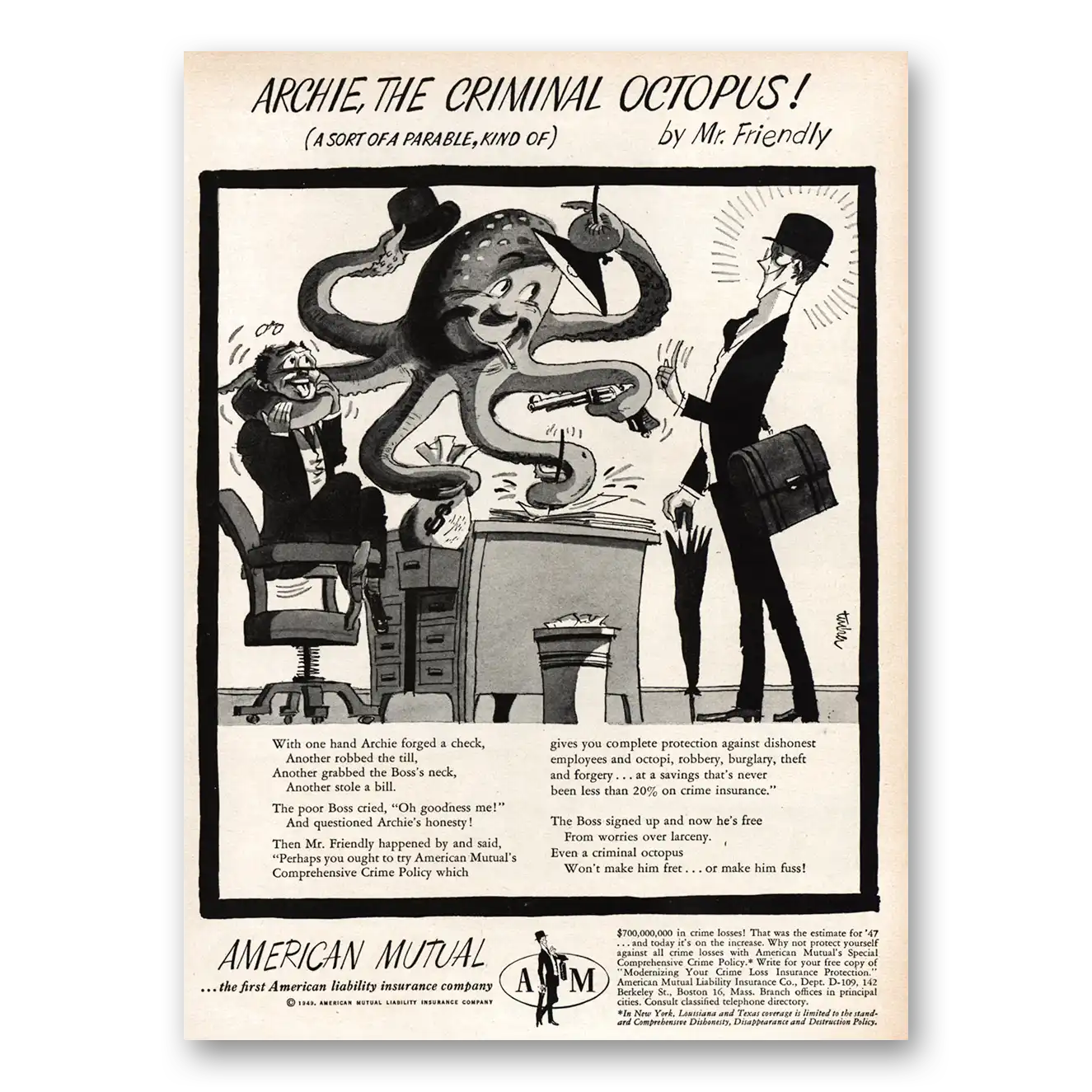 1949 American Mutual Insurance Print Ad | Criminal Octopus