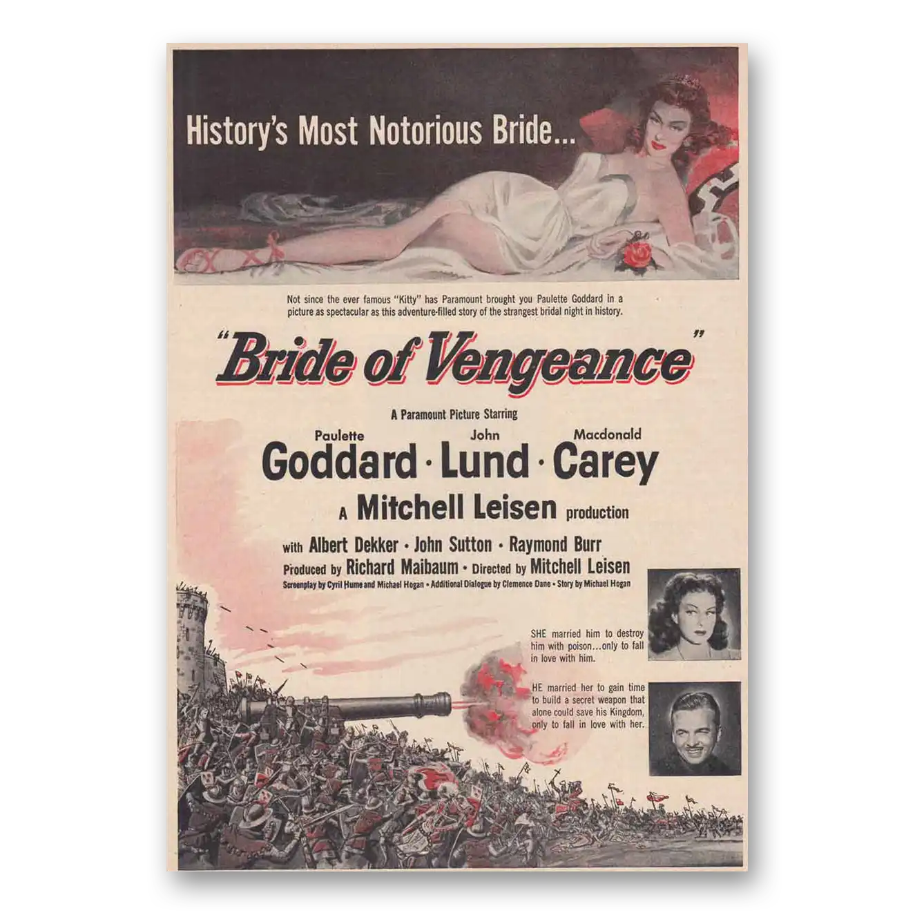 1949 Bride of Vengeance Movie Promo Print Ad | Goddard Lund