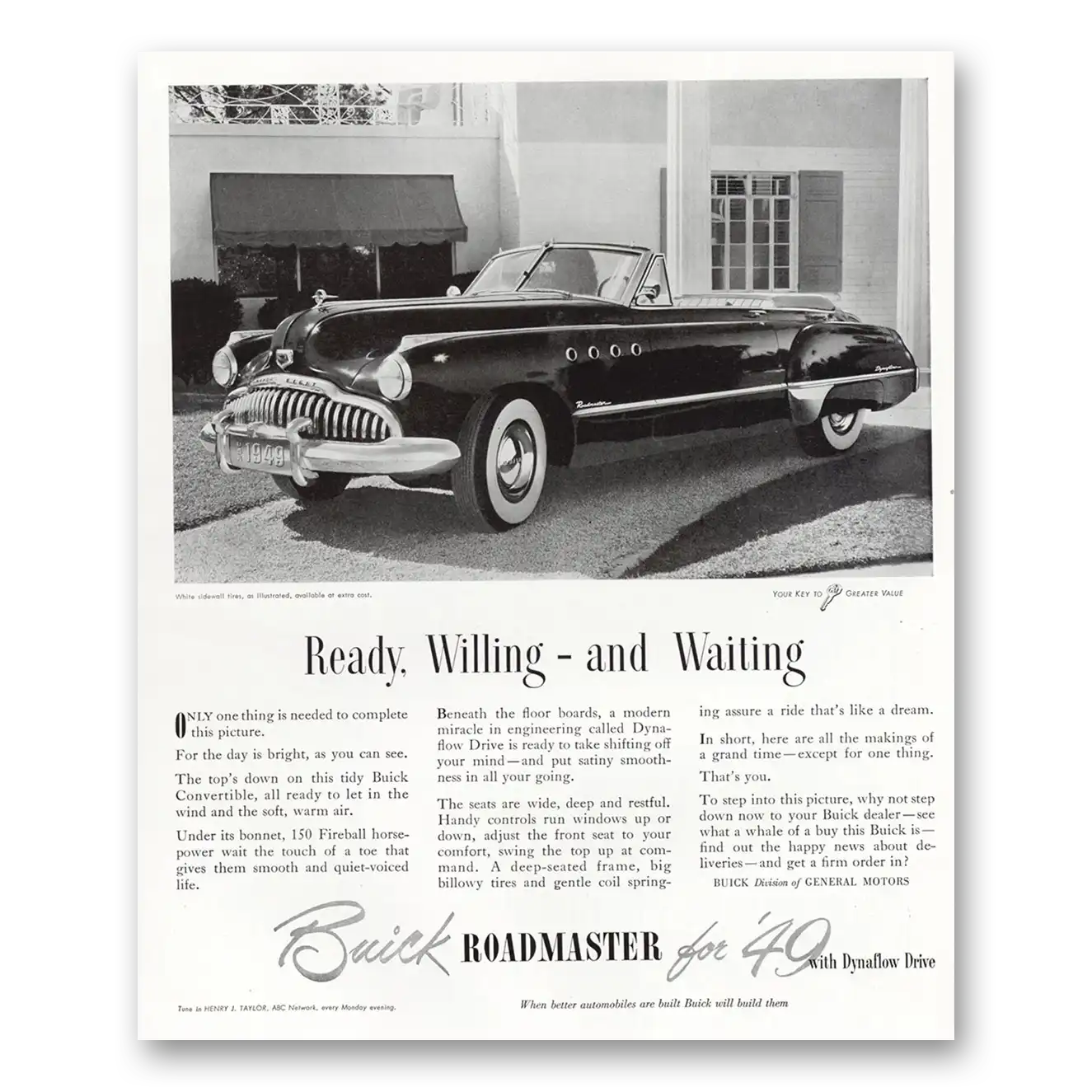 1949 Buick Roadmaster Print Ad | Ready Willing