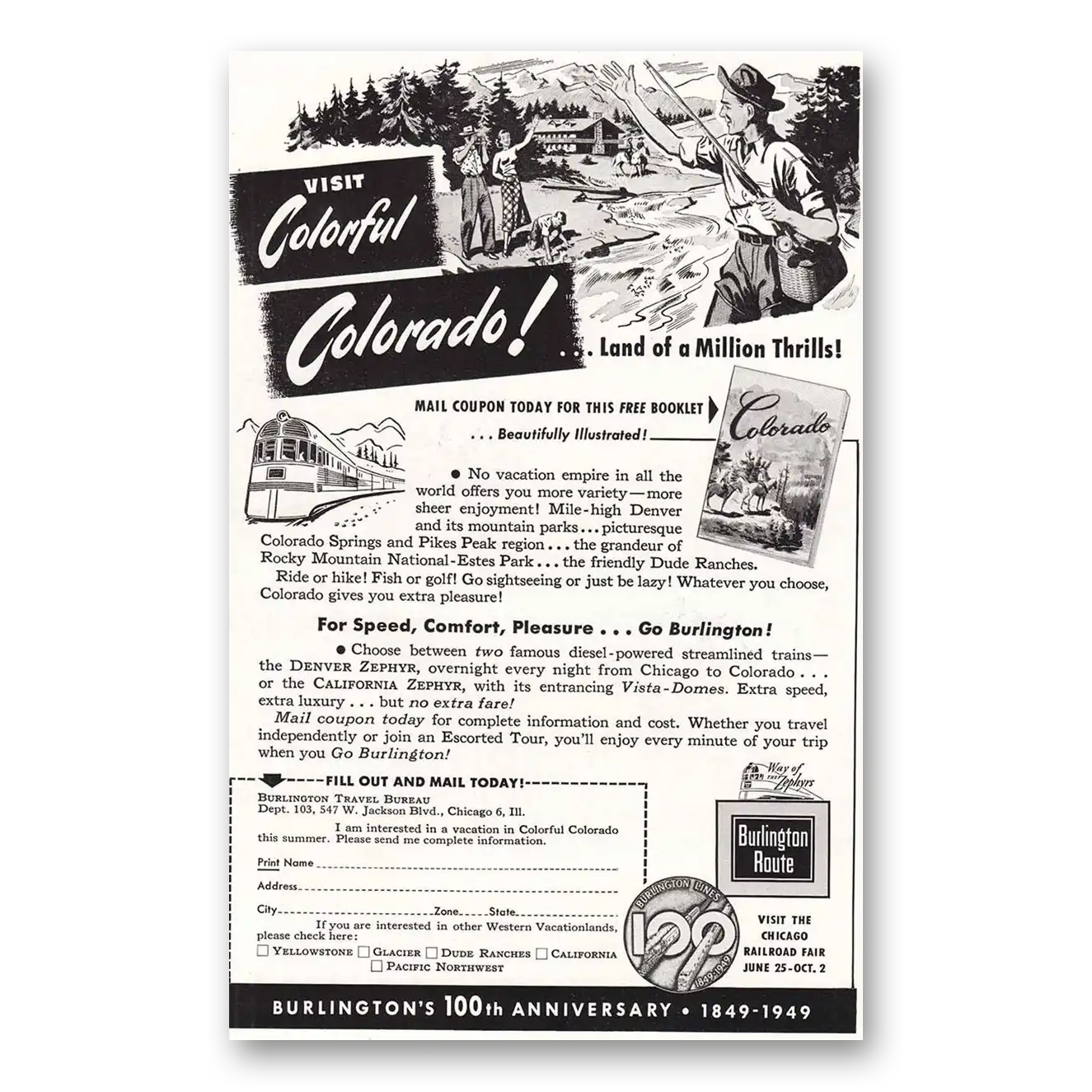 1949 Burlington Route Print Ad | Colorado