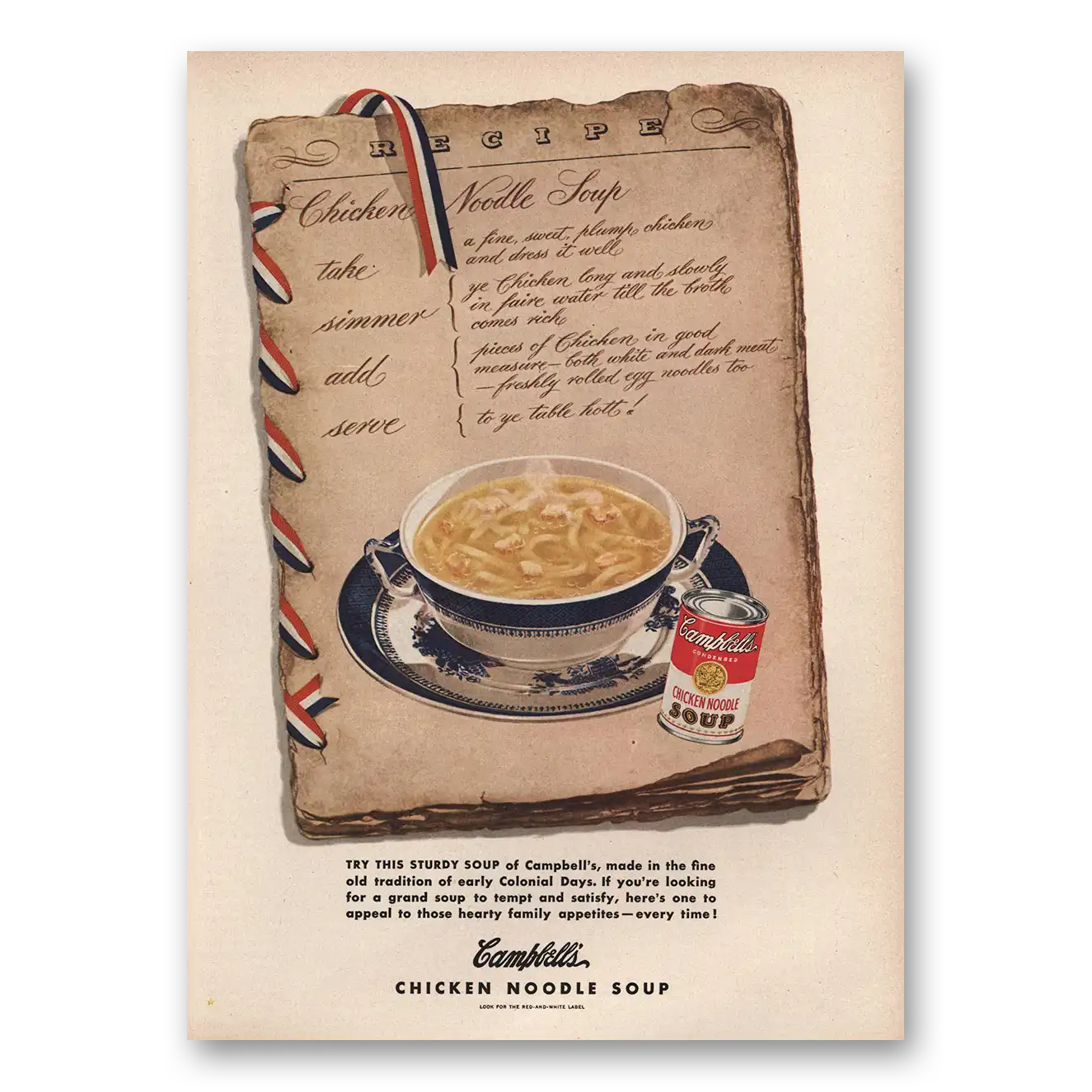 This is an original 1949 Campbells Chicken Noodle Soup print ad published by Campbells Soup.