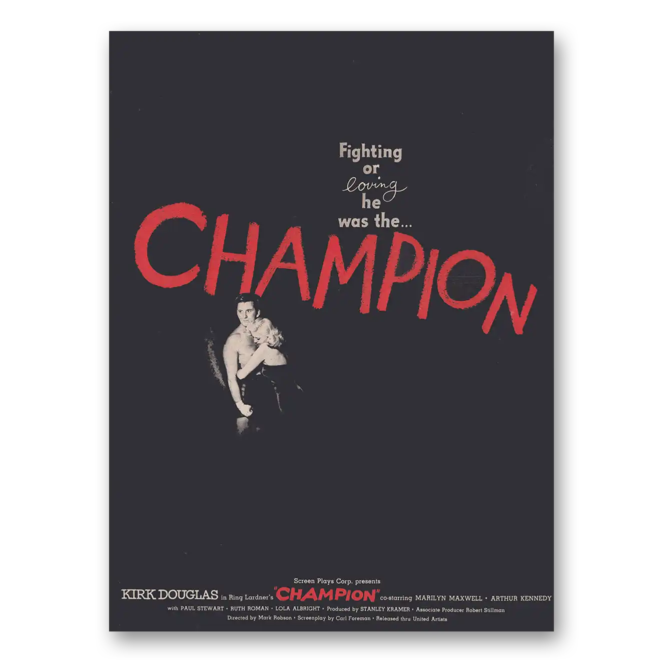 1949 Champion Movie Promo Print Ad | Kirk Douglas