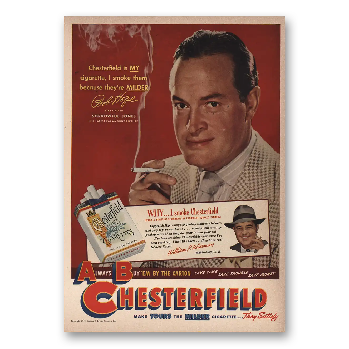 1949 Chesterfield Cigarettes Print Ad | Bob Hope