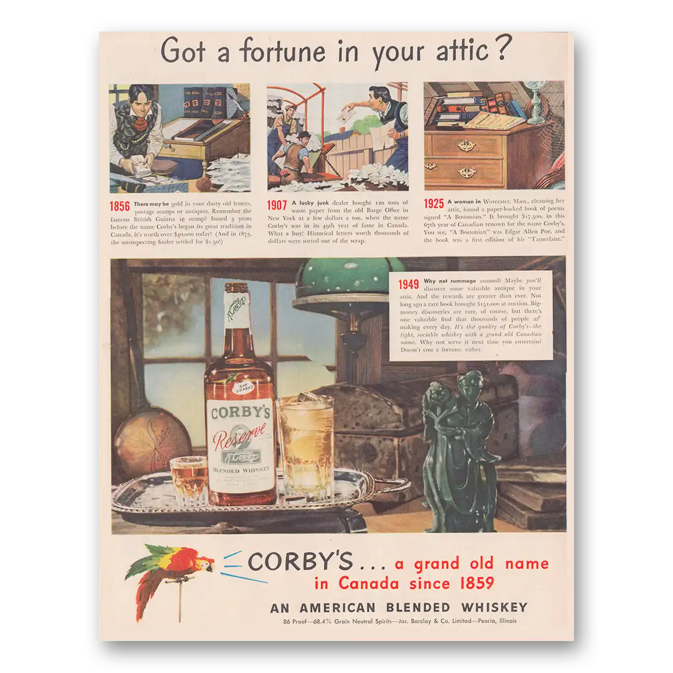 1949 Corbys Whiskey Print Ad | Fortune Attic