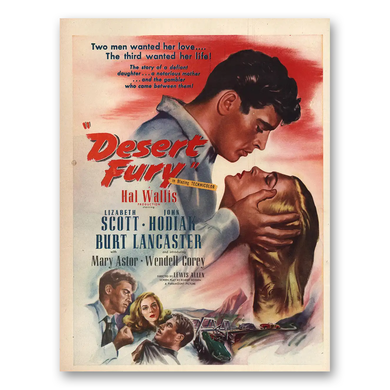 This is an original 1949 Desert Fury Movie Promo print ad published by Paramount Pictures.