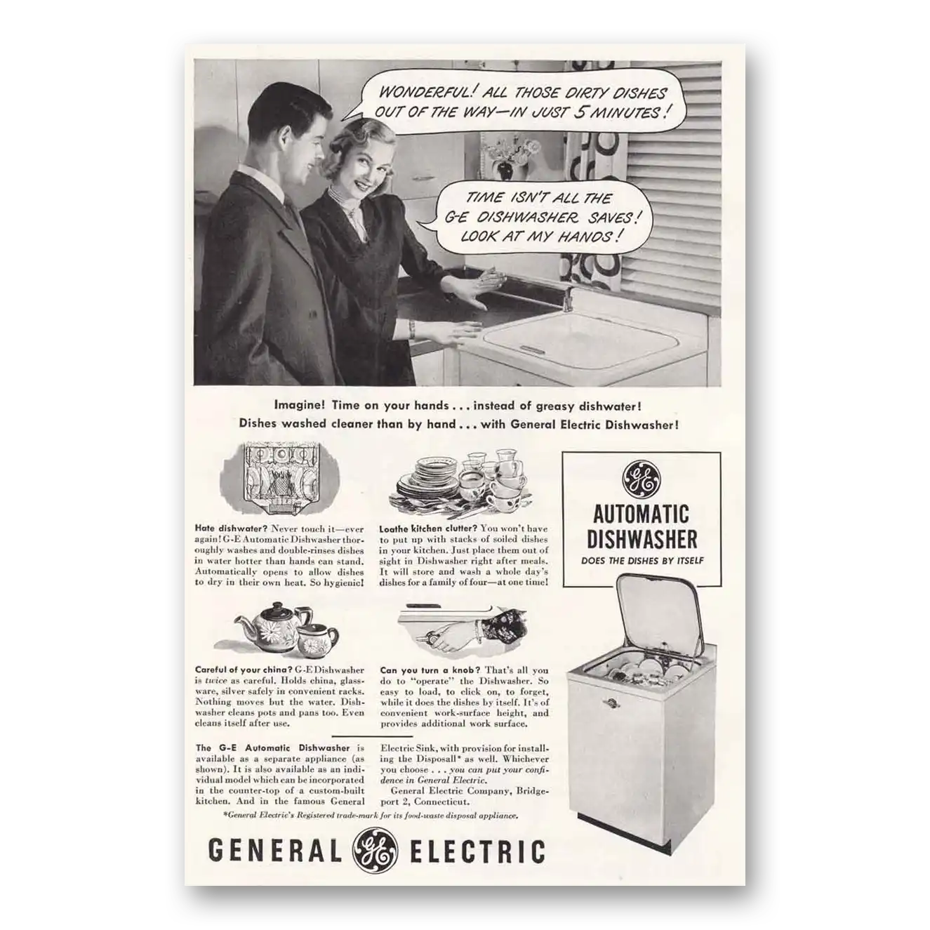 1949 General Electric Dishwasher Print Ad | Ge Wonderful