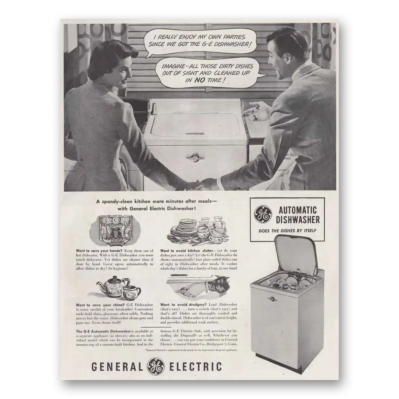 1949 General Electric Dishwasher Print Ad | Own Parties