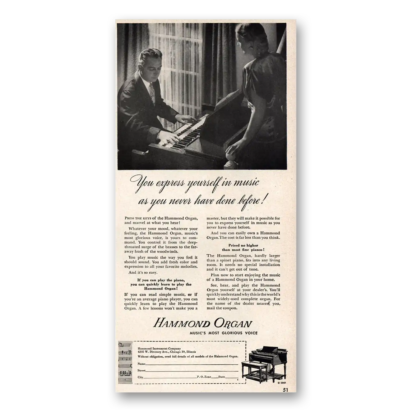 This is an original 1949 Hammond Organ print ad published by Hammond Organ.