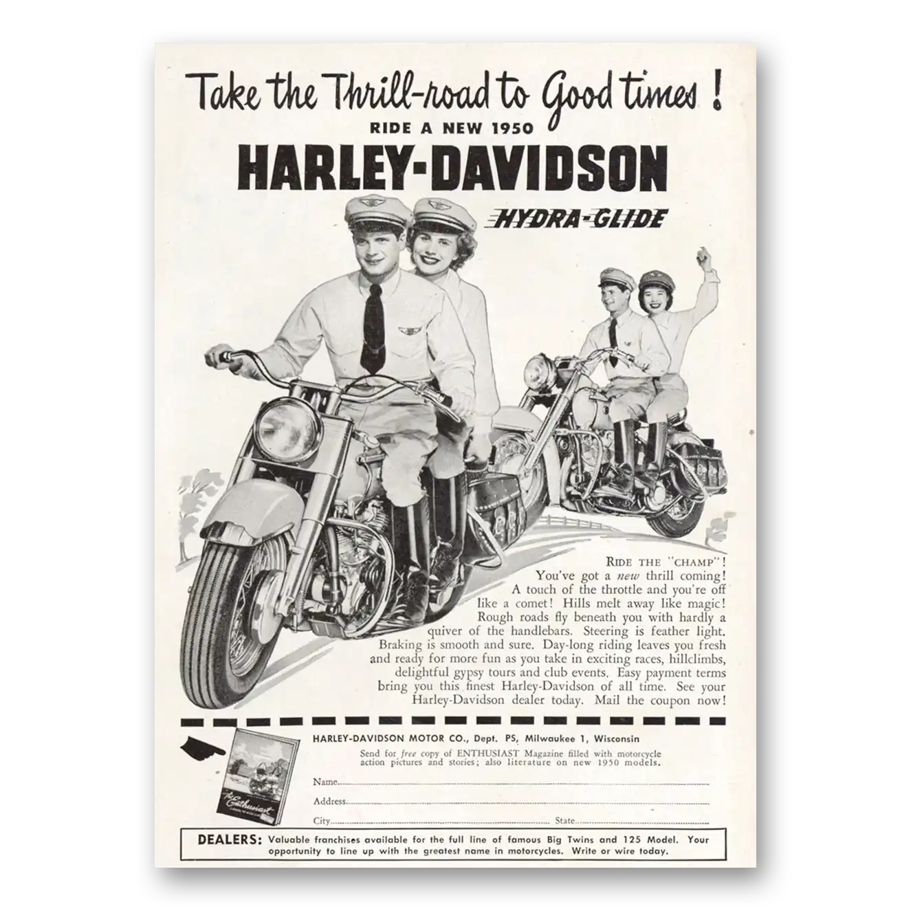 This is an original 1949 Harley Davidson print ad published by Harley Davidson.