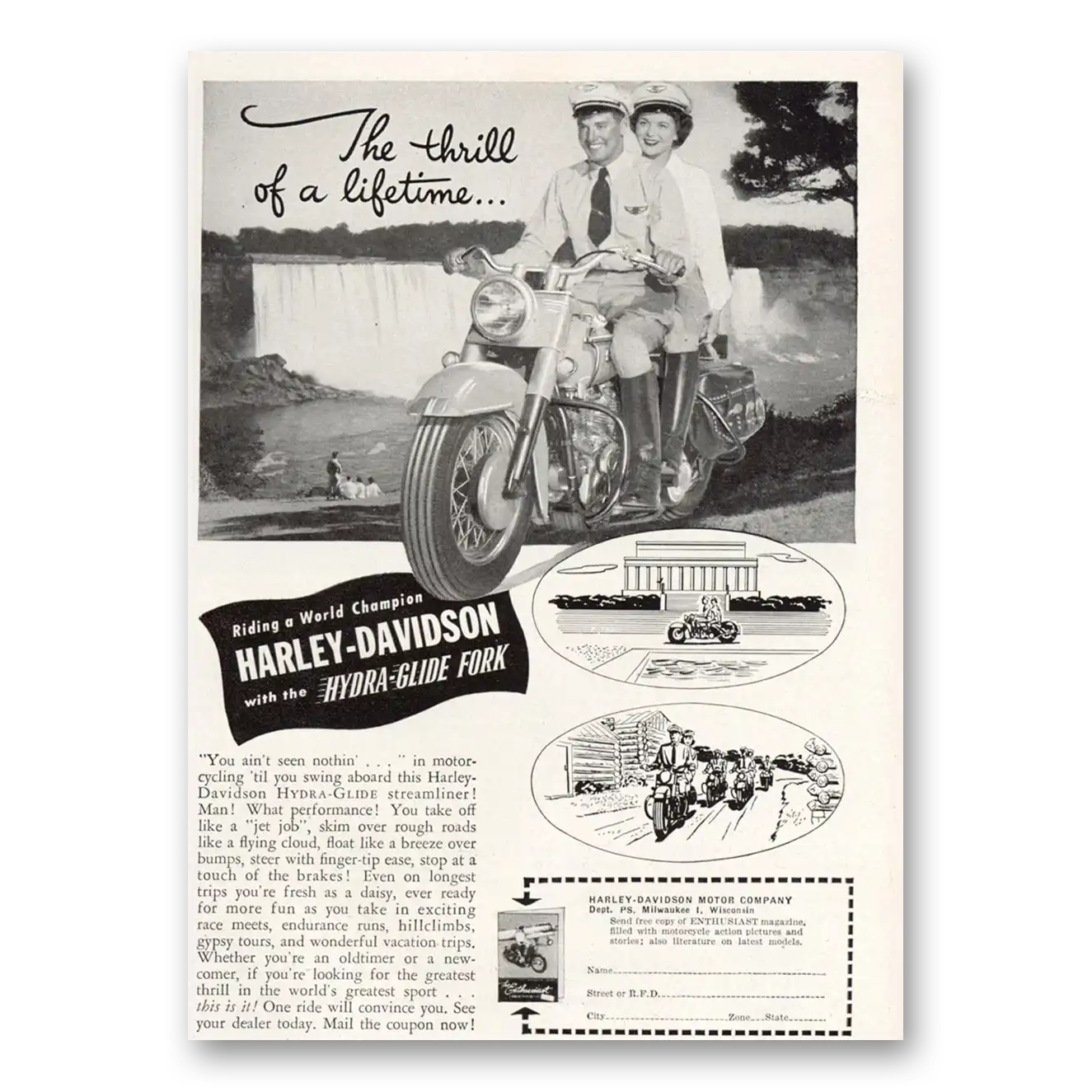 1949 Harley Davidson Print Ad | Thrill Lifetime1949 Harley Davidson Print Ad | Thrill Lifetime