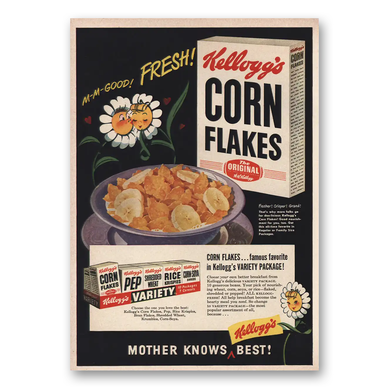 1949 Kelloggs Corn Flakes Print Ad | Mm Good Fresh