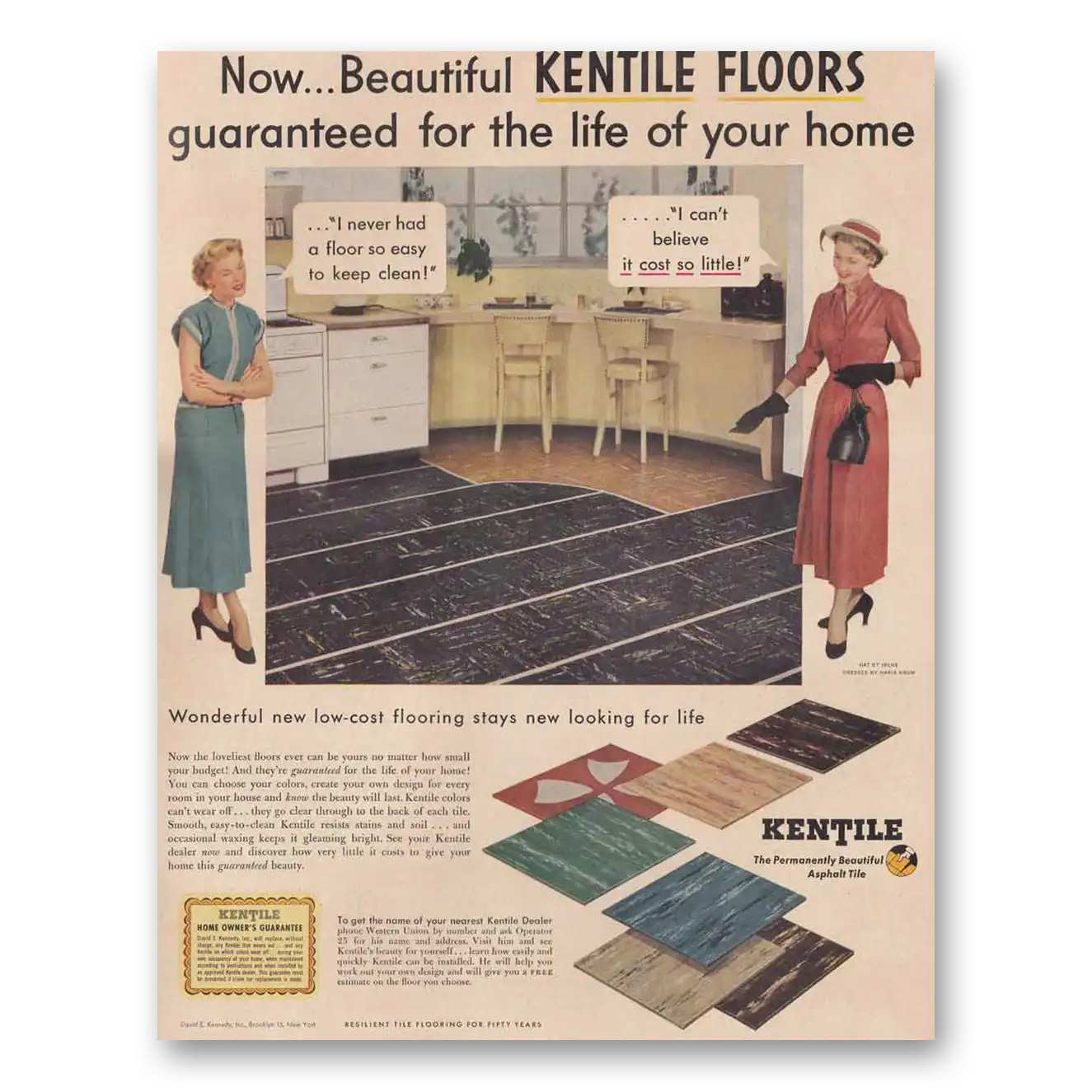 This is an original 1949 Kentile Flooring print ad published by Kentile.