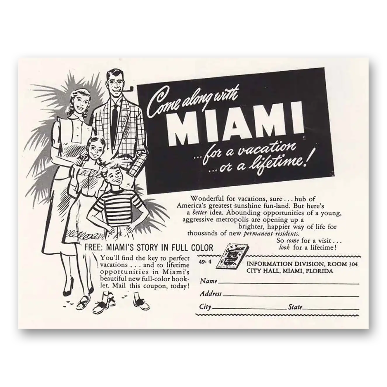 1949 Miami Florida Print Ad | Come Along