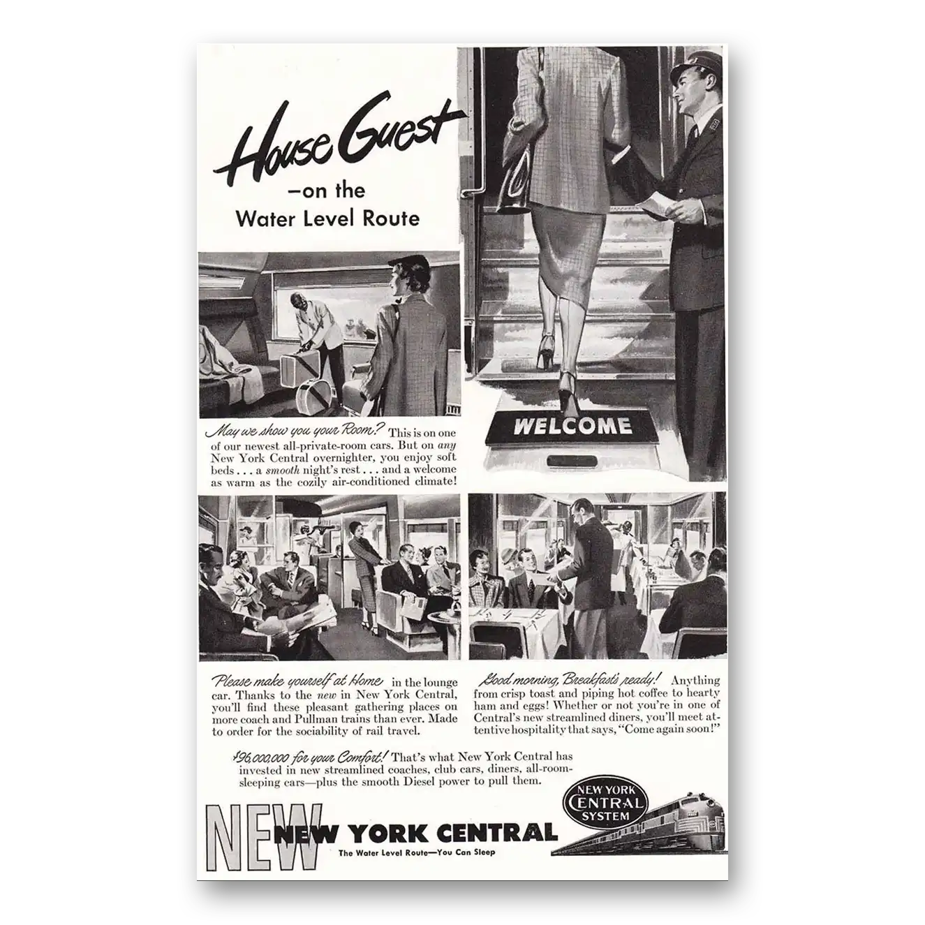1949 New York Central Print Ad | Water Level Route House Guest1949 New York Central Print Ad | Water Level Route House Guest