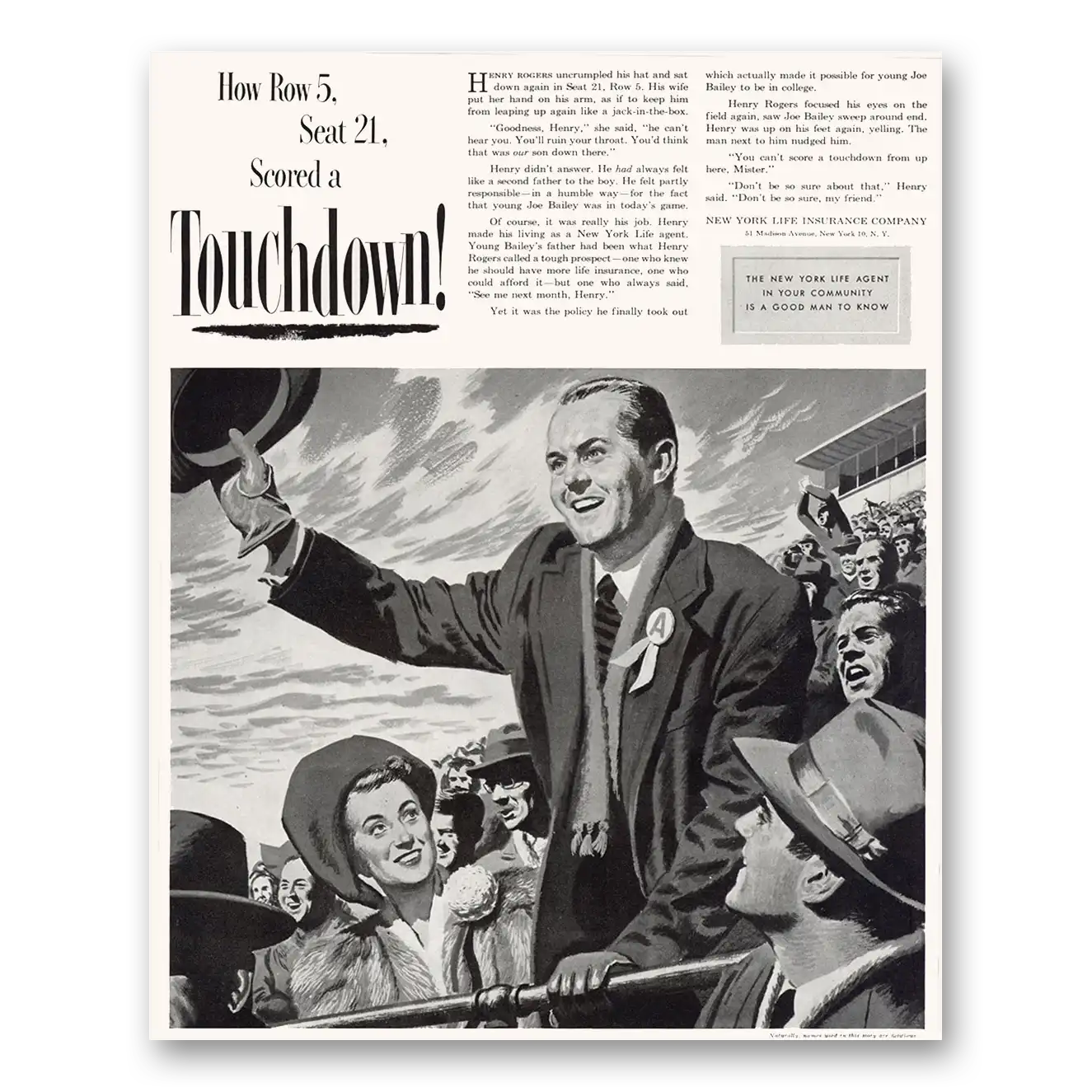 1949 New York Life Insurance Print Ad | Touchdown