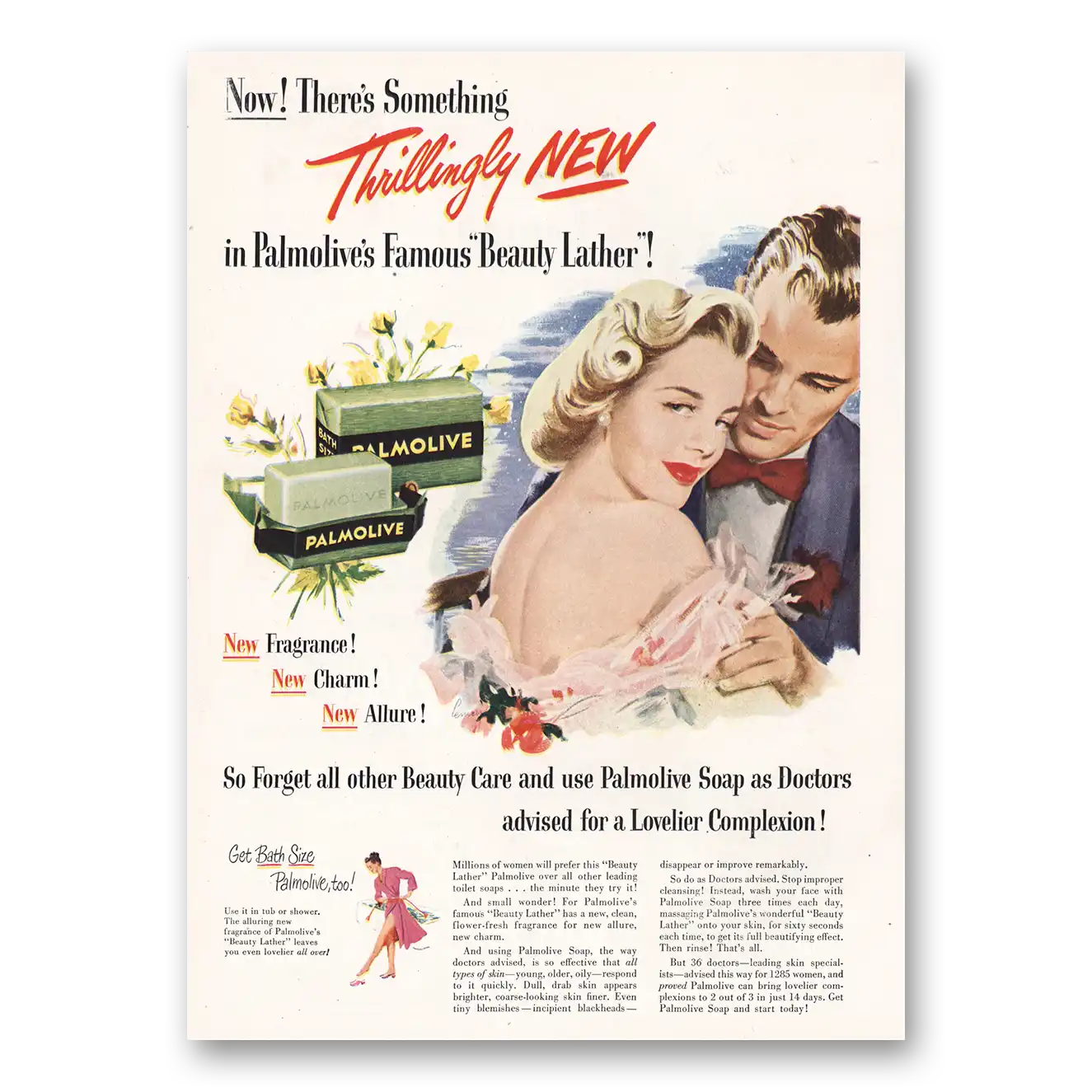 1949 Palmolive Soap Print Ad | Thrillingly New