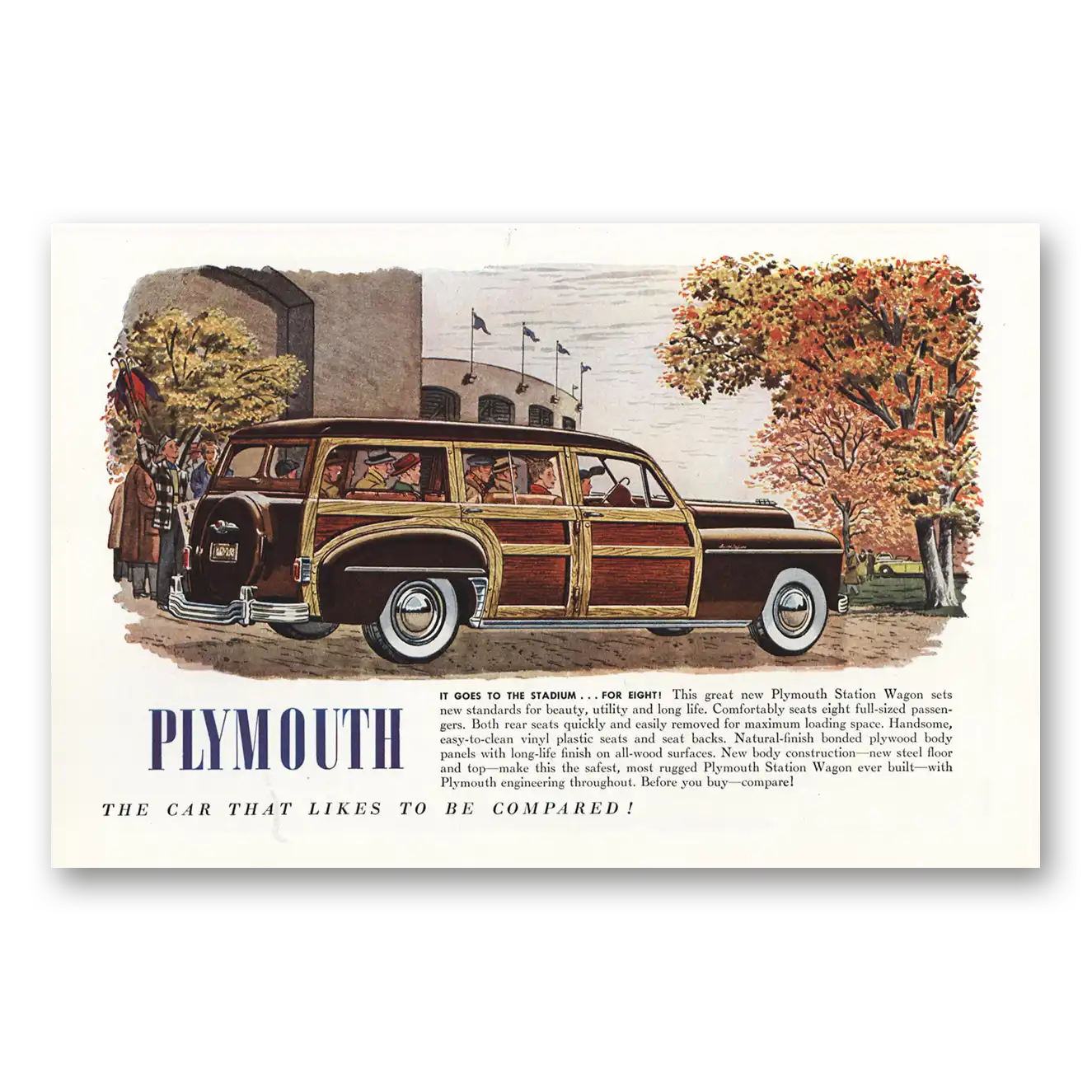 1949 Plymouth Station Wagon Print Ad | Goes Stadium
