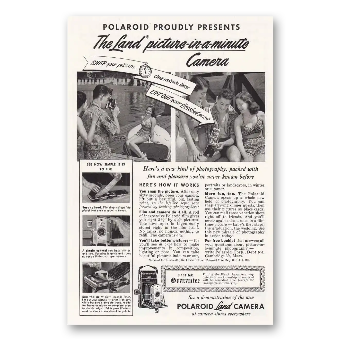 1949 Polaroid Land Camera Print Ad | Minute Camera