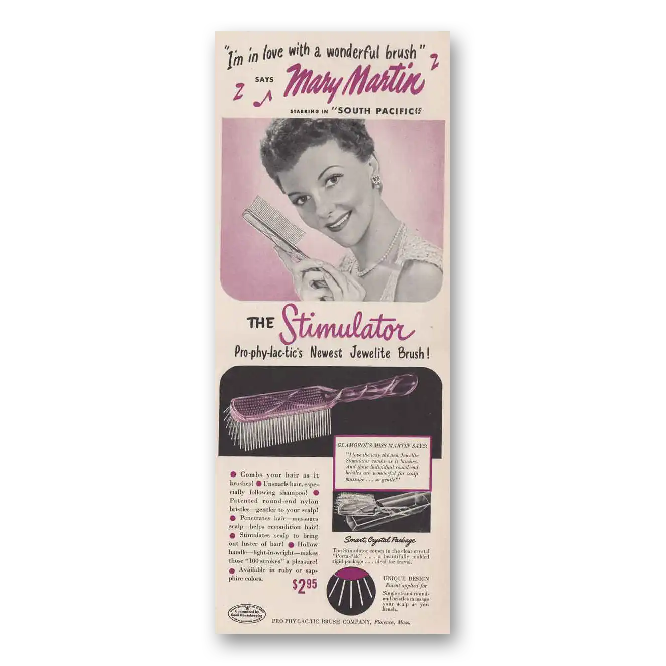 1949 Pro-Phy-Lac-Tic Brush Print Ad | Mary Martin