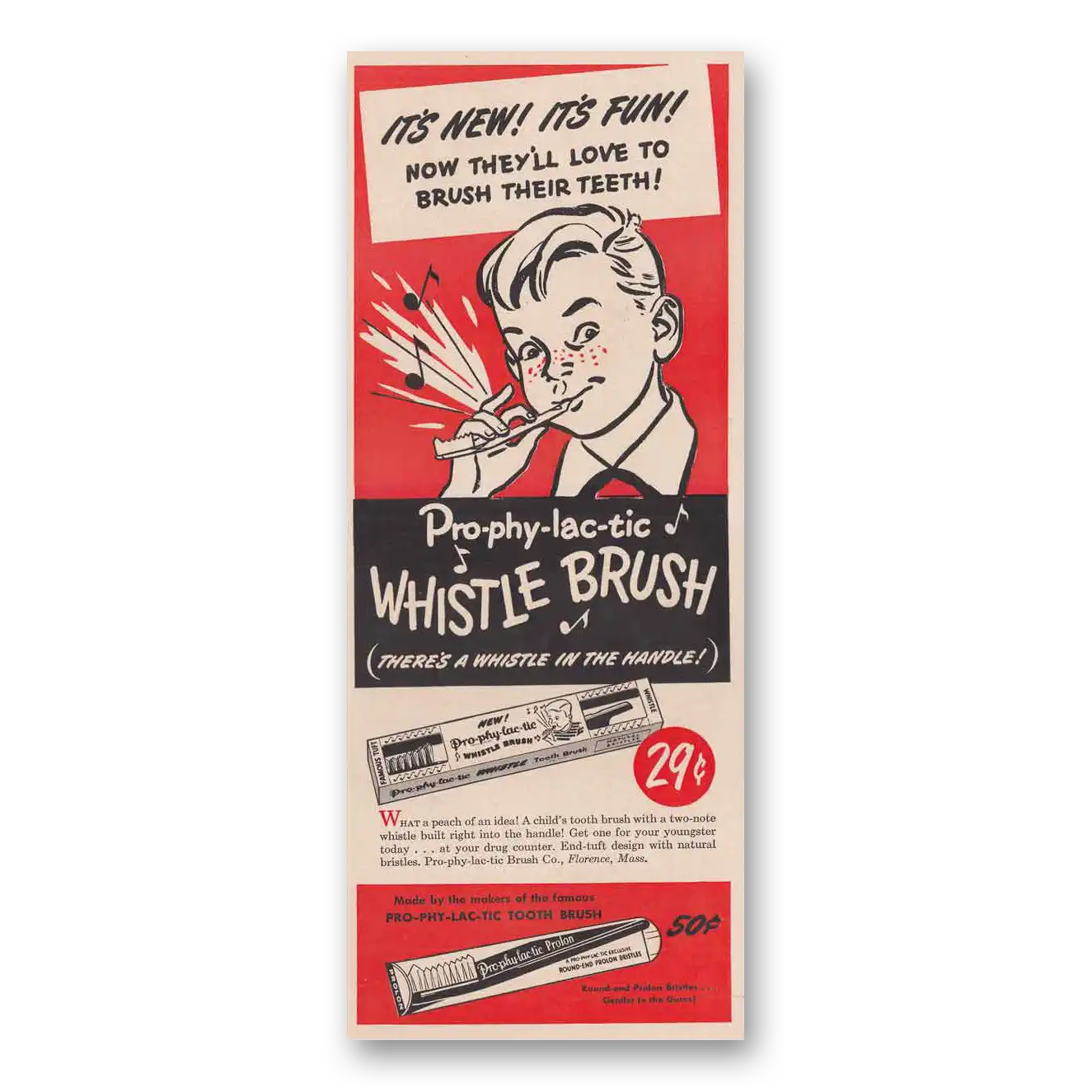 1949 Pro-Phy-Lac-Tic Brush Print Ad | There Whistle