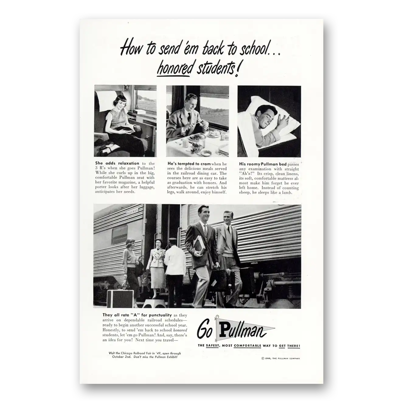 This is an original 1949 Pullman print ad published by Pullman.