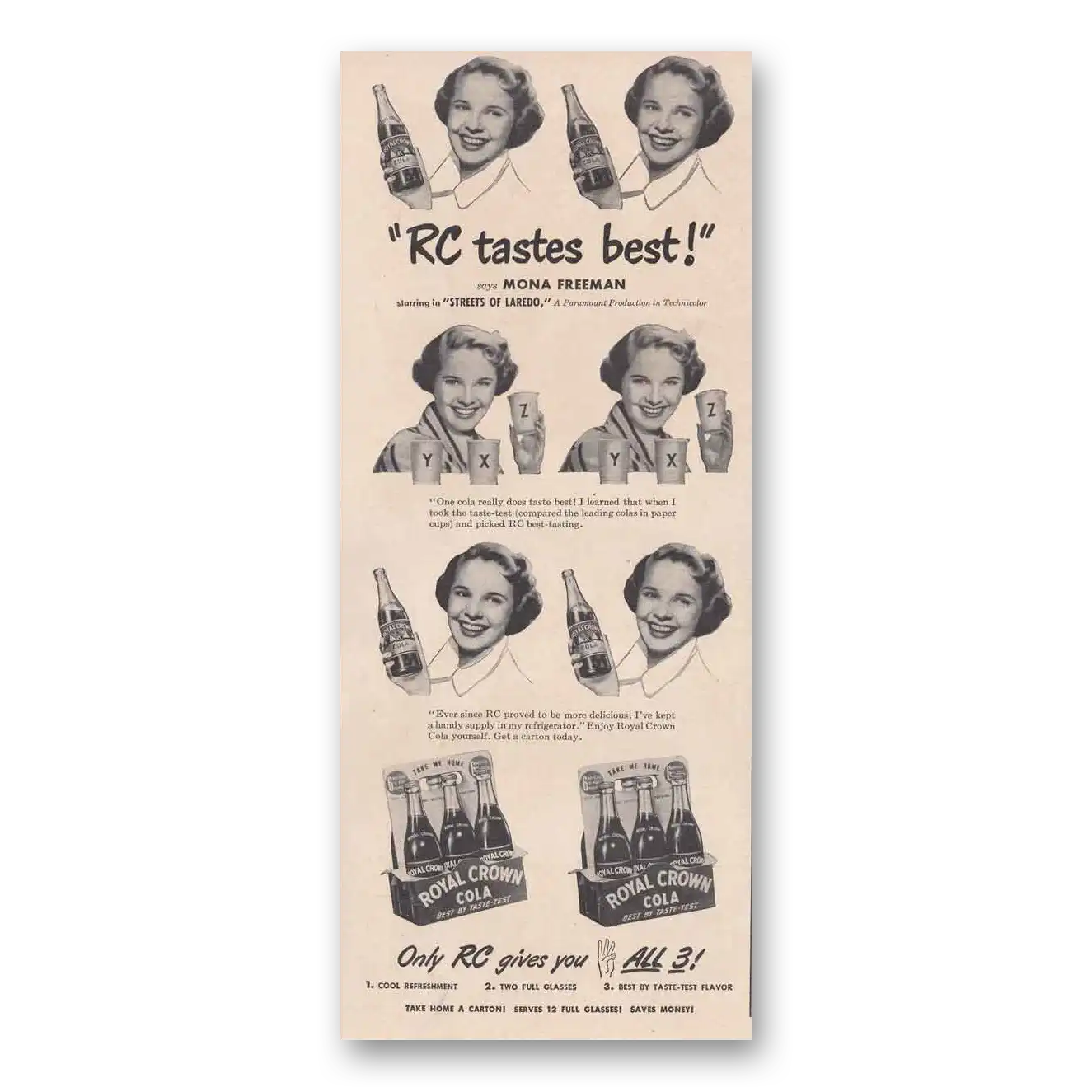 1949 Royal Crown Cola Print Ad | Mona Freeman