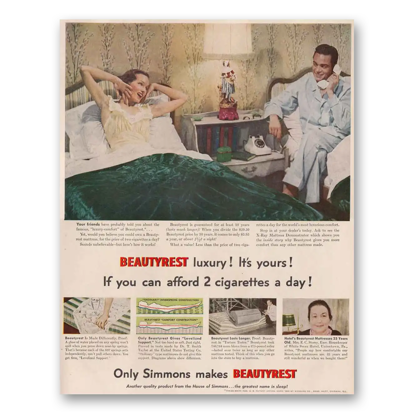 1950 Beautyrest Mattress Print Ad | Afford Cigarettes