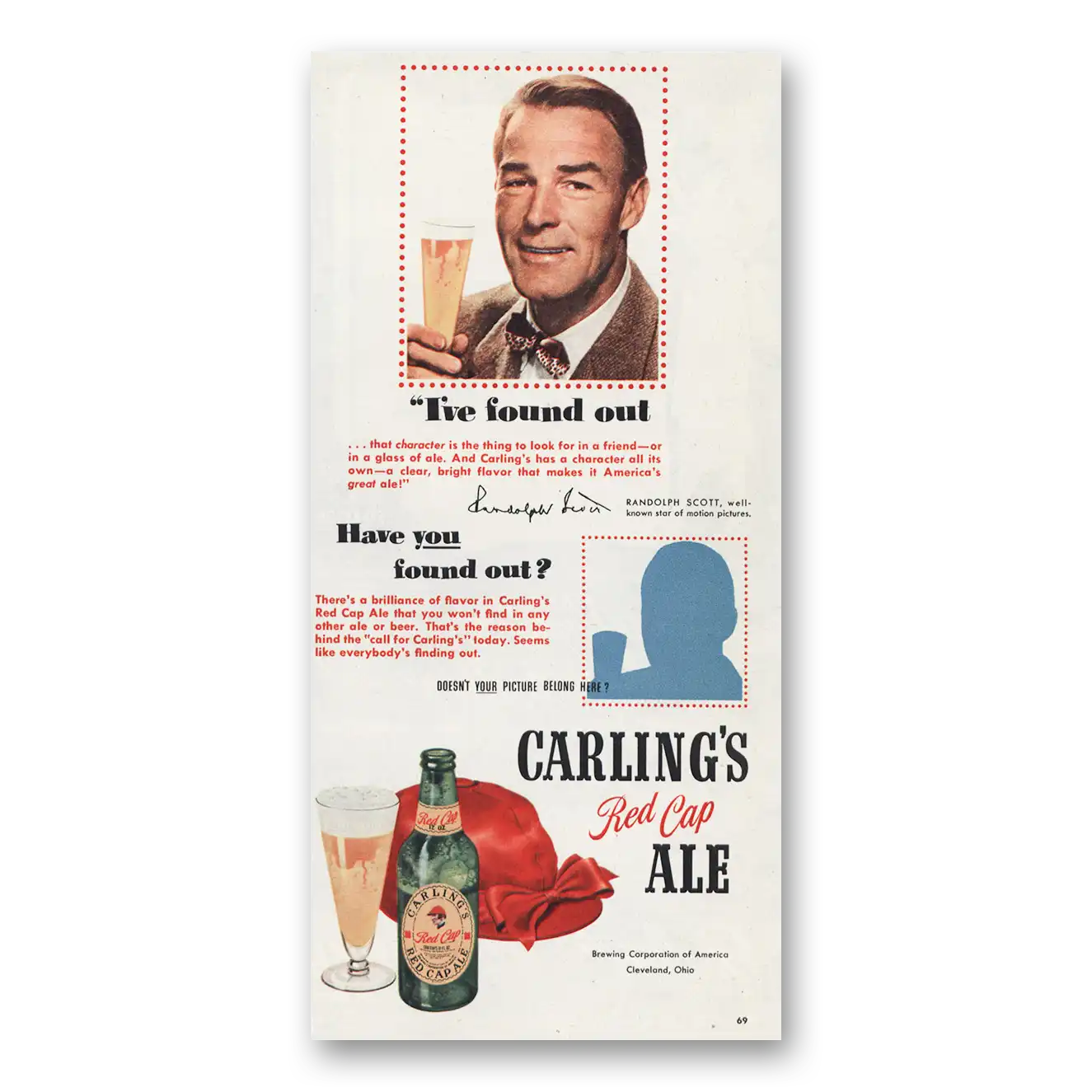 1950 Carlings Red Cap Ale Print Ad | Randolph Scott