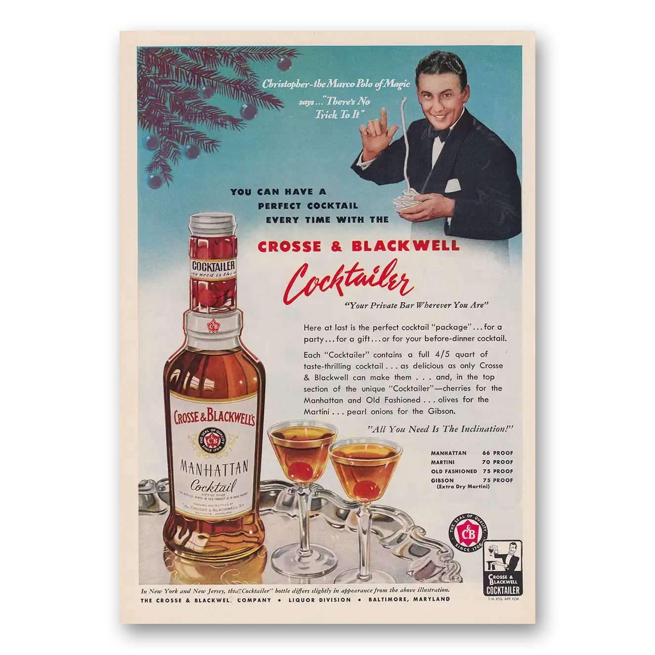 1950 Crosse & Blackwell Print Ad | Cocktailer