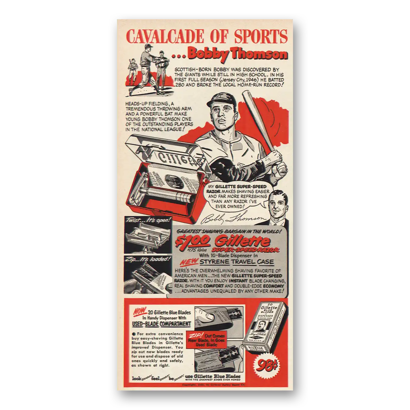 1950 Gillette Print Ad | Bobby Thomson