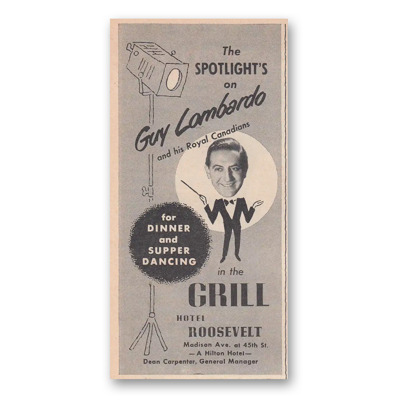 1950 Hotel Roosevelt Print Ad | Guy Lombardo