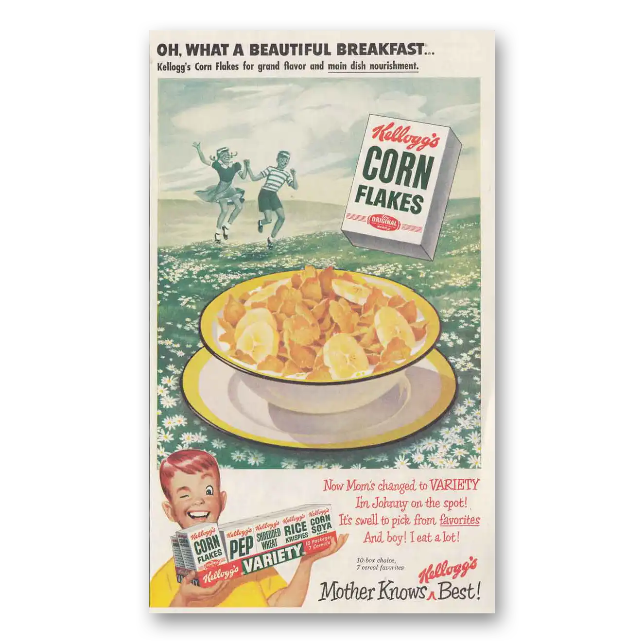 1950 Kelloggs Corn Flakes Print Ad | Beautiful Breakfast