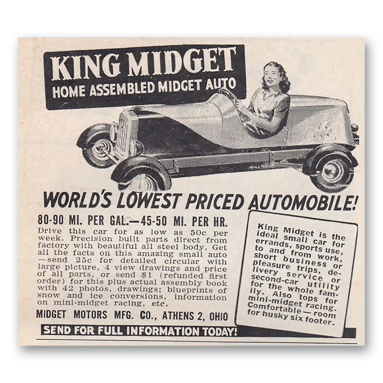 This is an original 1950 King Midget print ad published by Midget Motors.