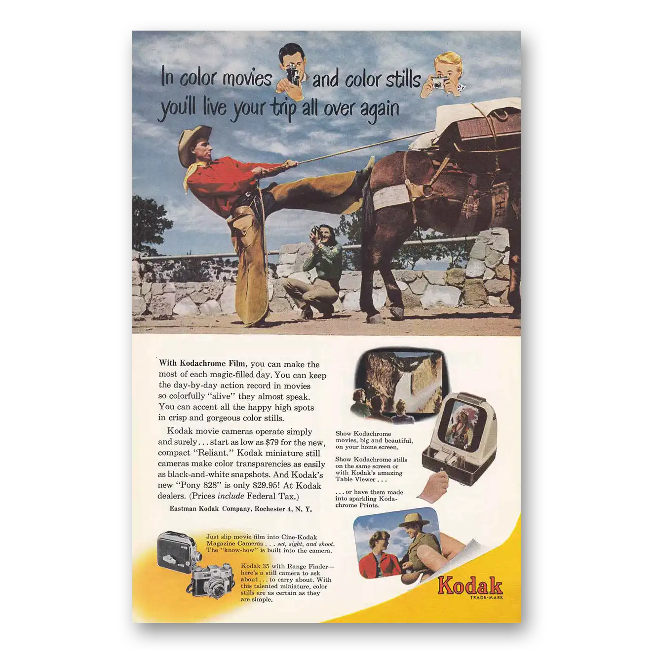 This is an original 1950 Kodak Film print ad published by Eastman Kodak.