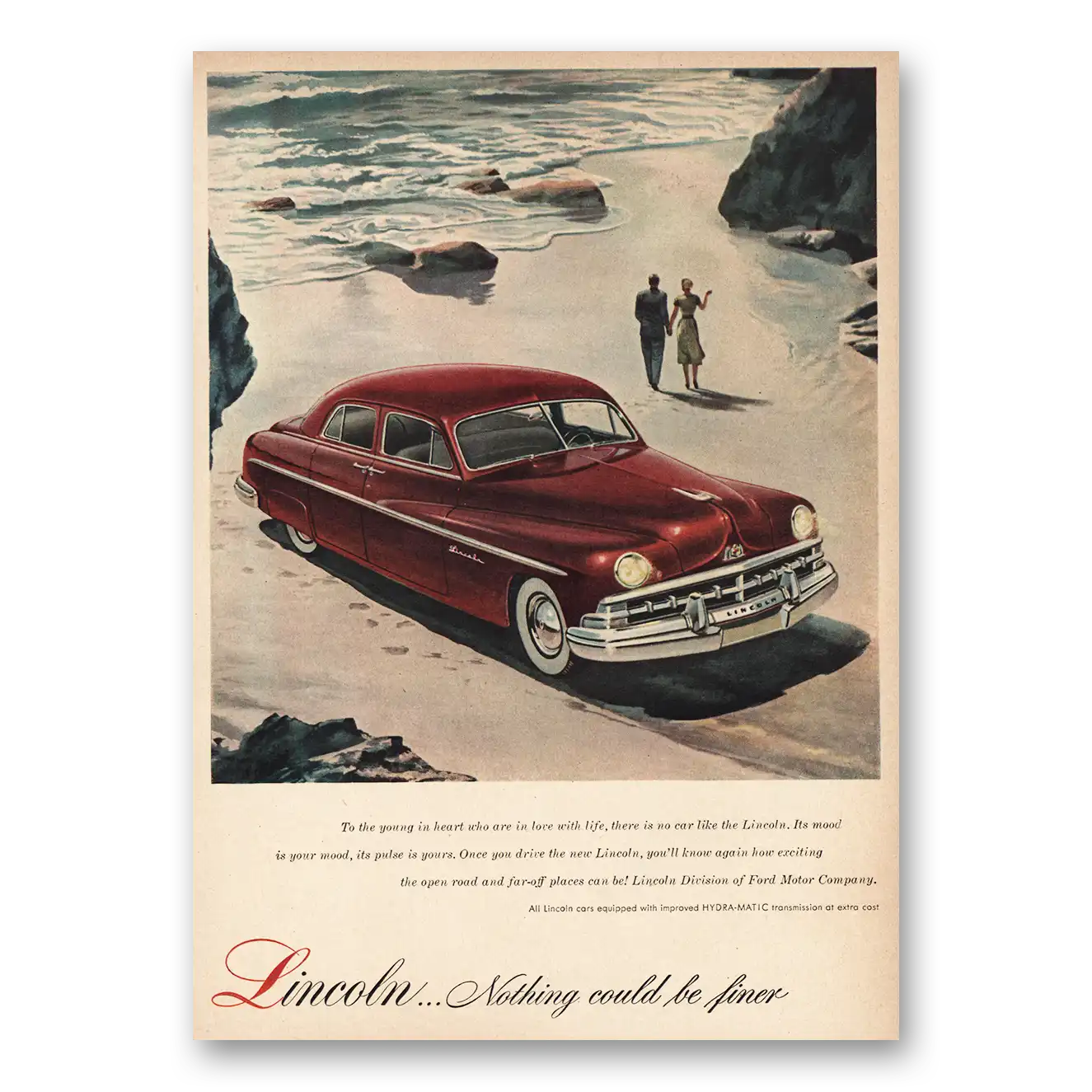 1950 Lincoln Print Ad | Young In Heart Beach