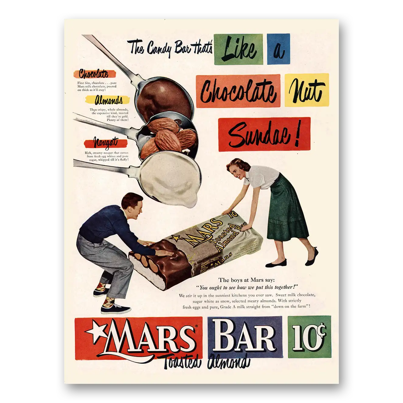 1950 Mars Candy Bar Print Ad | Chocolate Nut