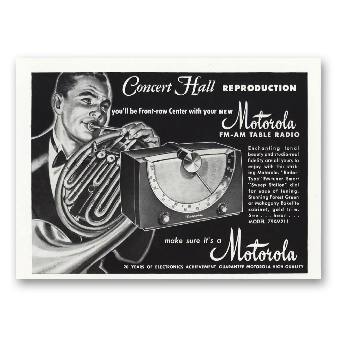 This is an original 1950 Motorola Radio print ad published by Motorola.