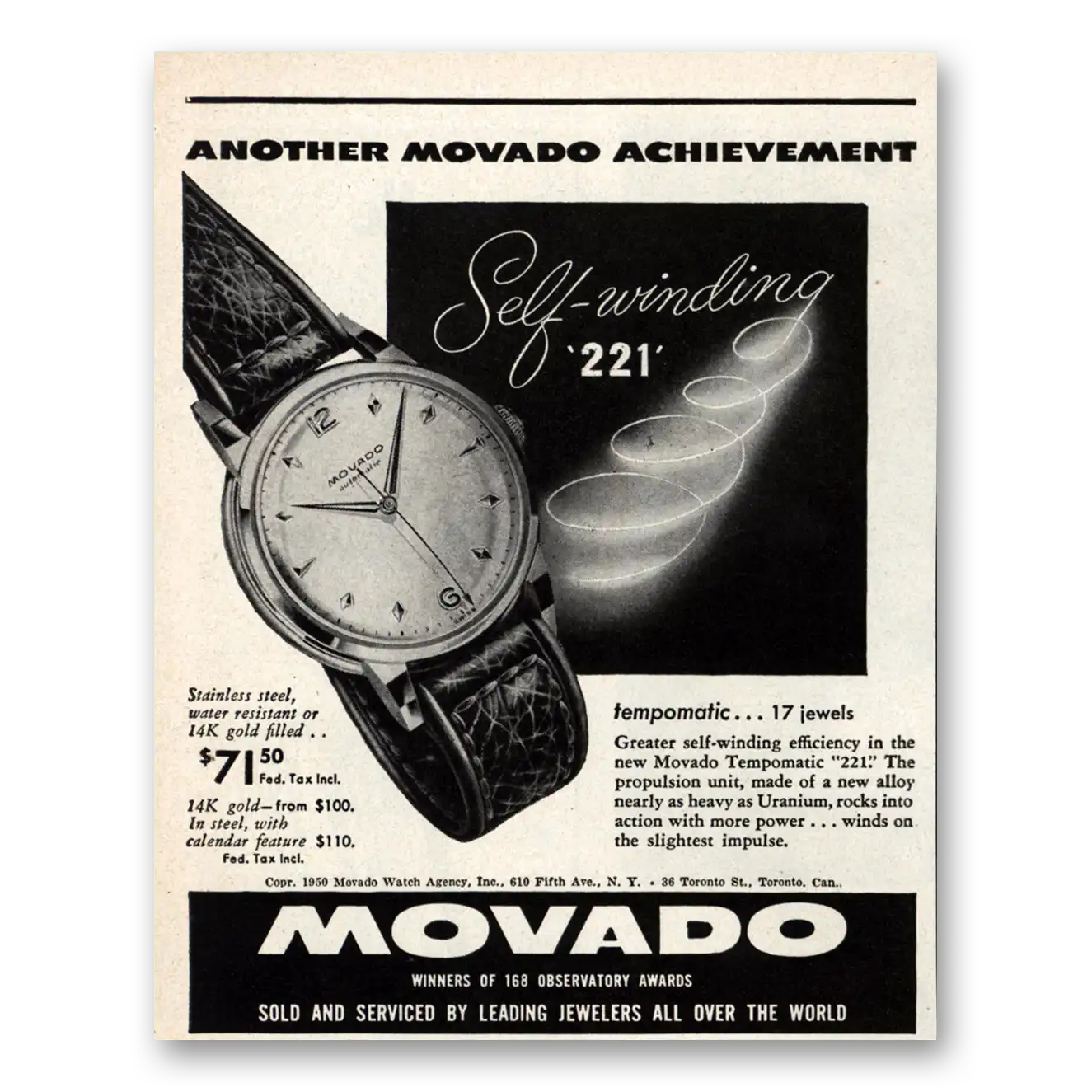 1950 Movado Watch Print Ad | Tempomatic