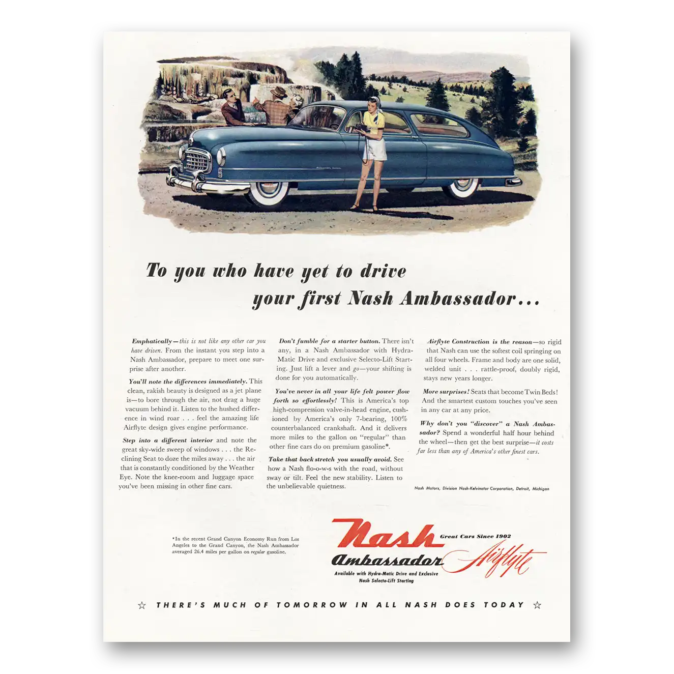 This is an original 1950 Nash Motors print ad published by Nash Motors.