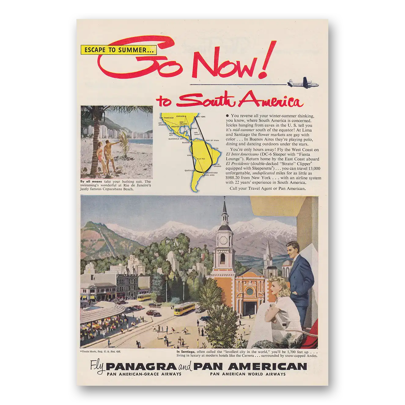 1950 Pan Am Print Ad | Santiago