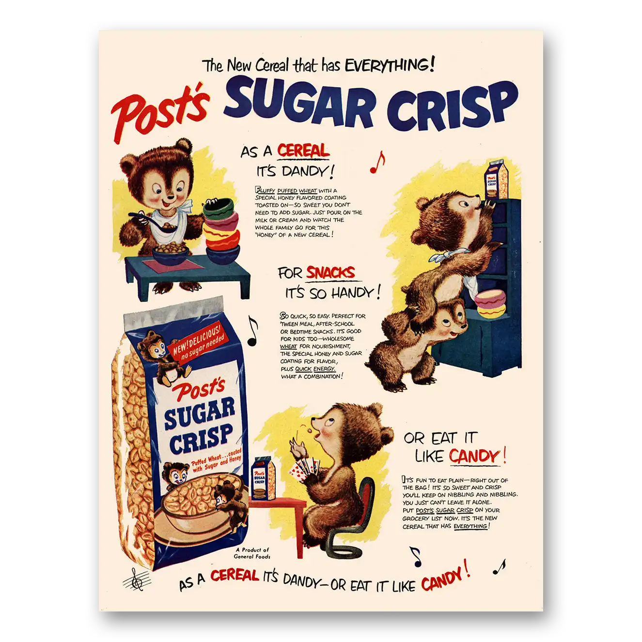 1950 Posts Sugar Crisp Cereal Print Ad | Dandy