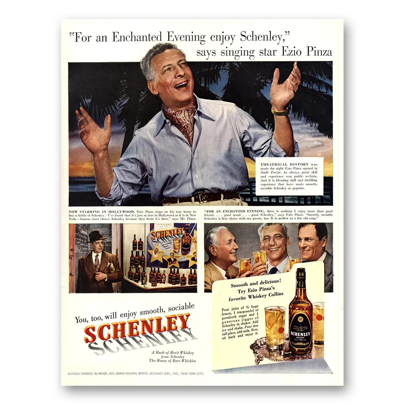 1950 Schenley Whiskey Print Ad | Ezio Pinza