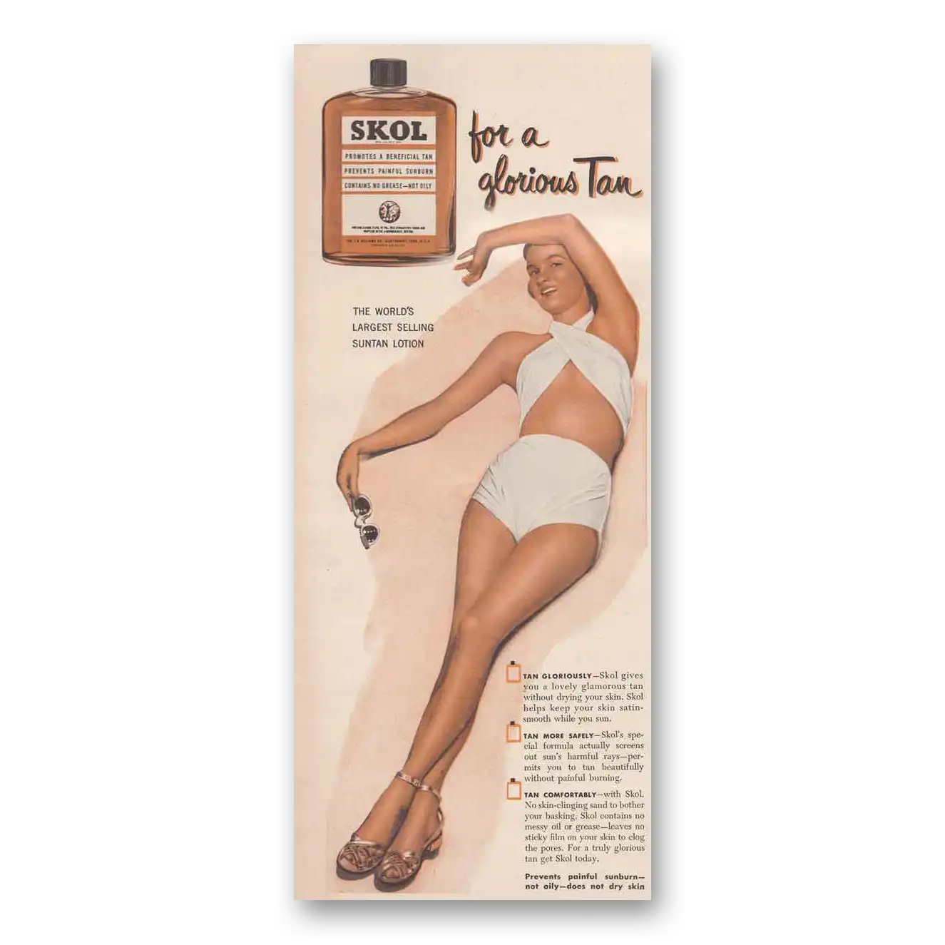 1950 Skol Sun Tan Lotion Print Ad | Glorious Tan1950 Skol Sun Tan Lotion Print Ad | Glorious Tan