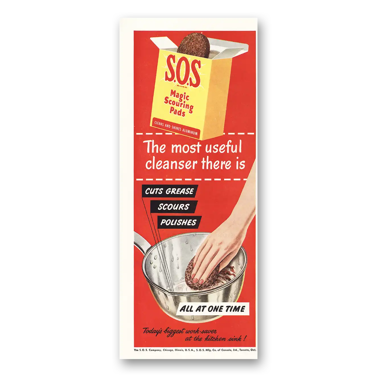 1950 SOS Scouring Pads Print Ad | Magic Scouring Pads