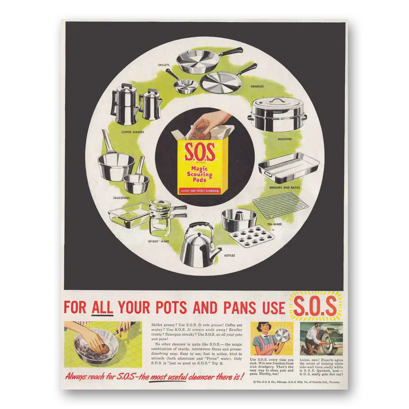 1950 SOS Scouring Pads Print Ad | Pots Pans