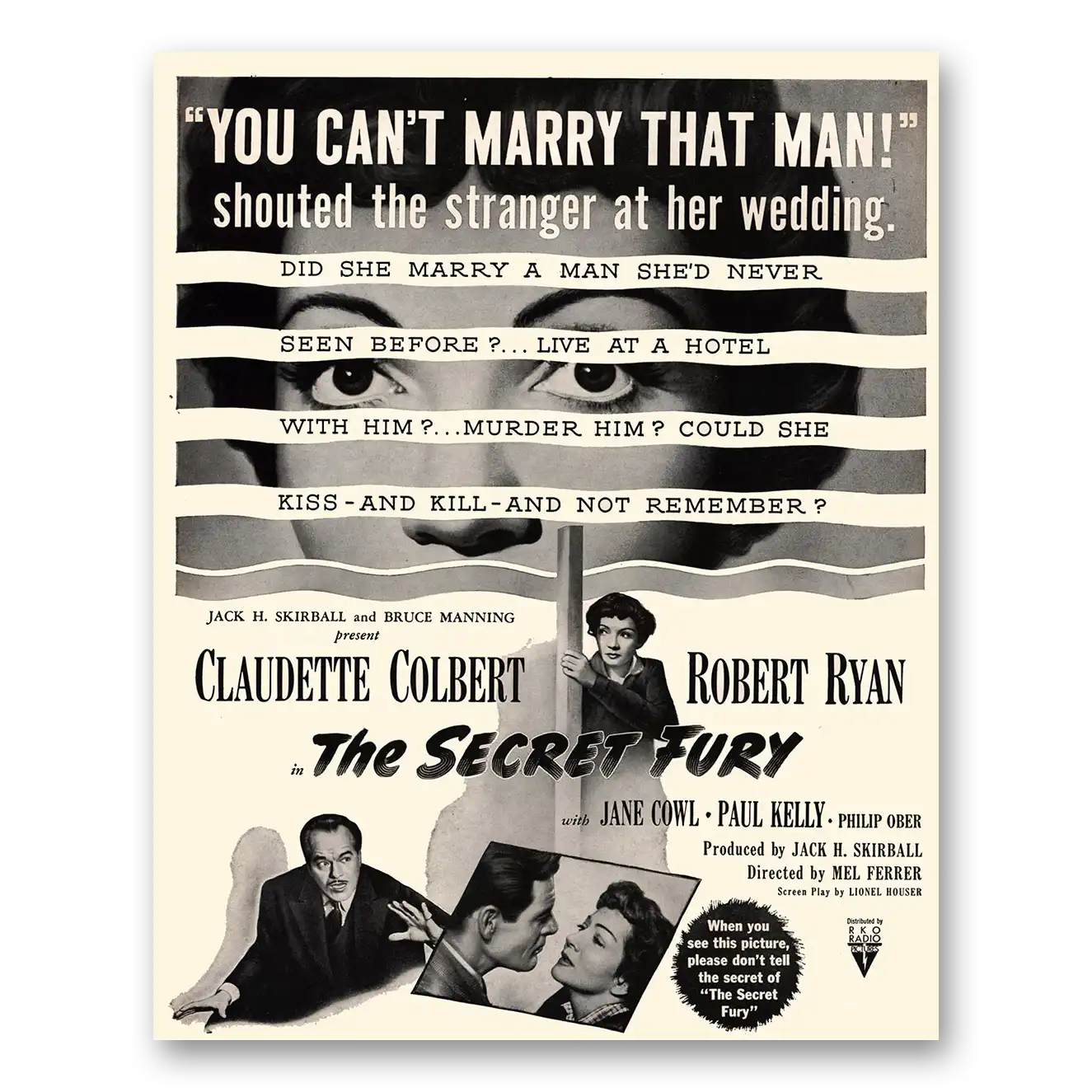 This is an original 1950 The Secret Fury Movie Promo print ad published by RKO Radio.