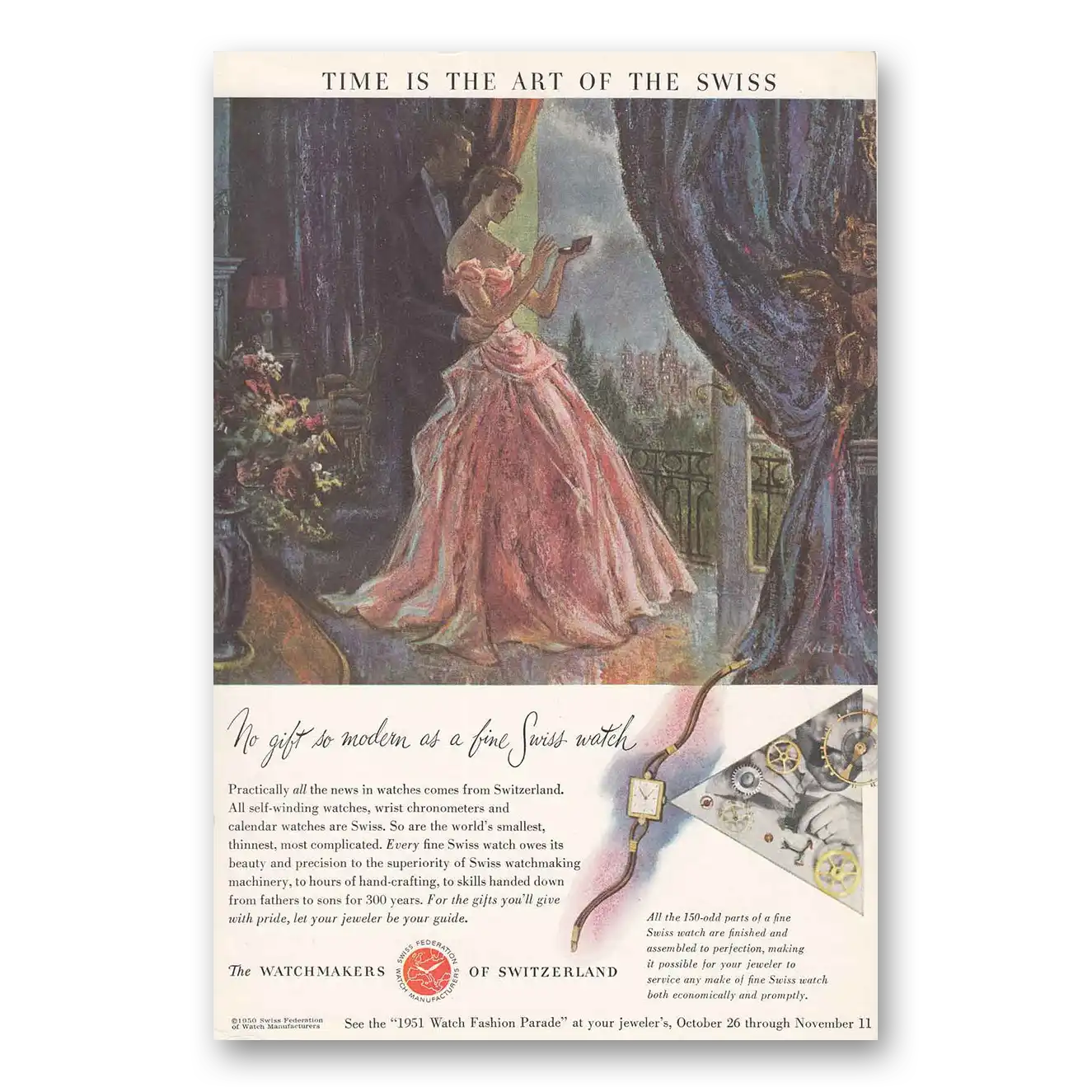 This is an original 1950 Watchmakers of Switzerland print ad published by Watchmakers of Switzerland.
