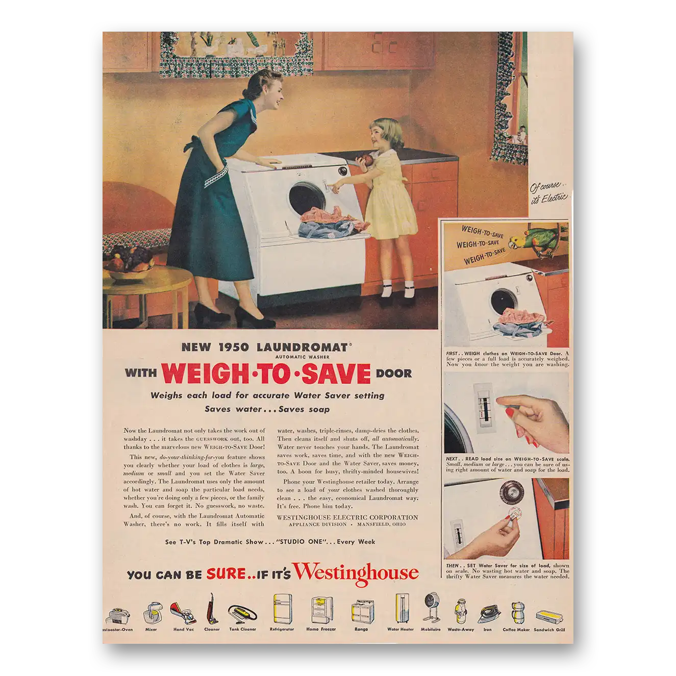 This is an original 1950 Westinghouse Washer print ad published by Westinghouse.