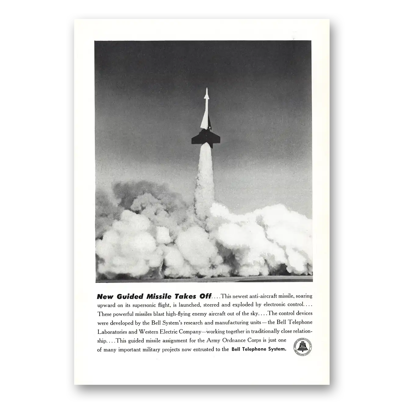1951 Bell Telephone Print Ad | New Guided Missile Takes Off